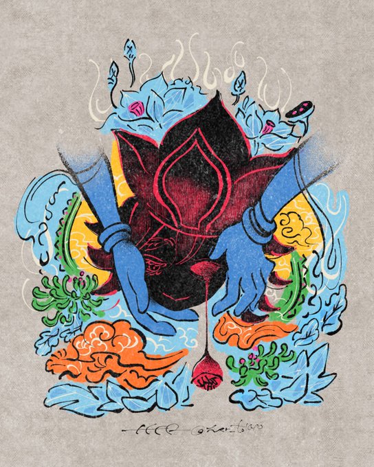 #三億アカウントの中から私を発掘してください 仏画や染付や墨画のような絵を描くフリーランスイラストレーターです。 漫画とアニメと特撮が好きです。 今までのお仕事やご依頼につきましてはwebサイトをご覧下さい🐫🌙 🔗web her.main.jp ⚠️作品の無断転載・使用はご遠慮下さい