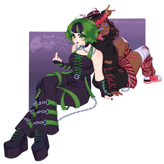 watermelon goths for a lovely commissioner! <3 #digitalart #commissionart #arttwt #artwt #characterart