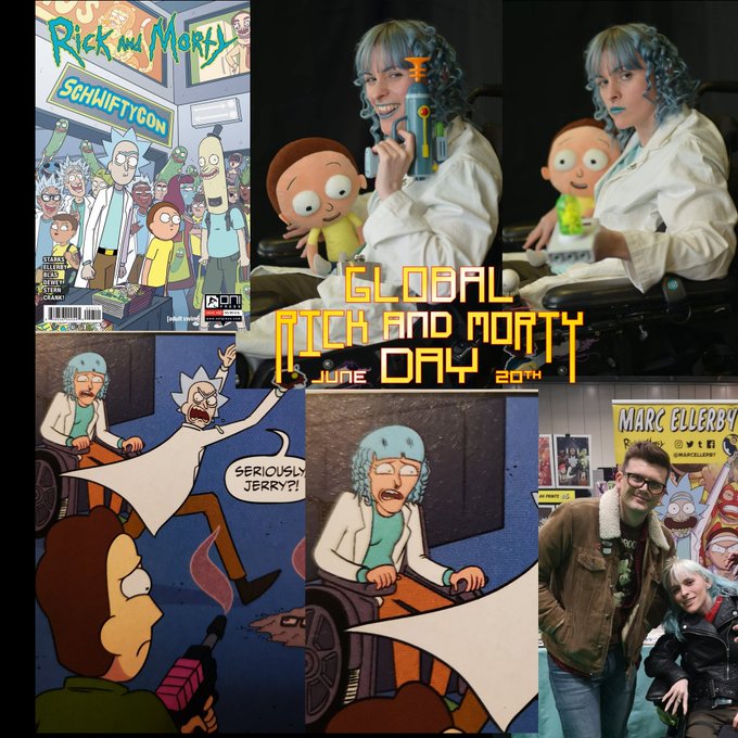 Here is a cool thing for #globalrickandmortyday @Welsh_Harls88 was in the @RickandMorty comic #57. She was in the panel when Jerry shoots someone (no spoiler here) would like 2 thanks @MarcEllerby for the honour #rickyourself #cosplay #femalerick #RickandMortyseason5 @OniPress