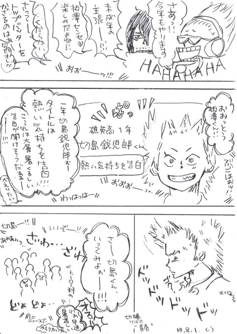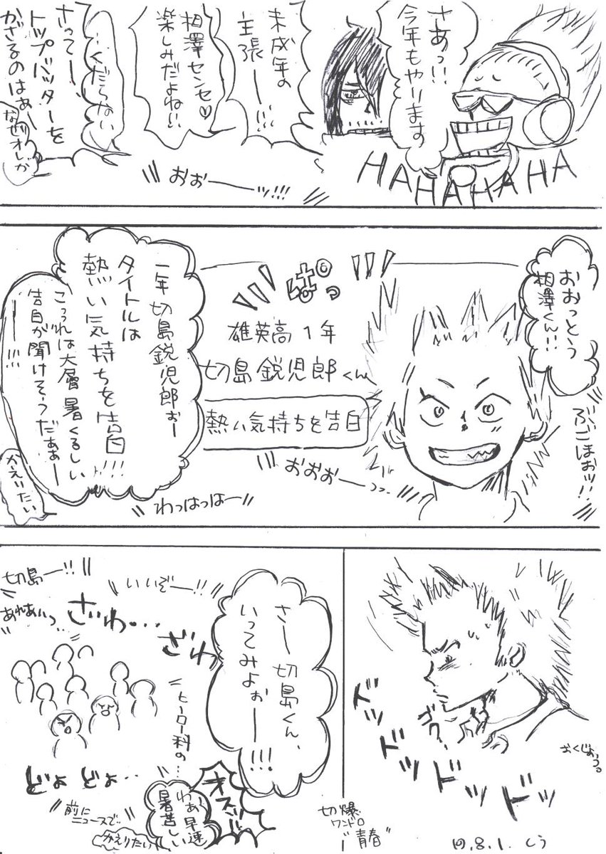 発掘埋没落描きで切爆ワンドロ過去お題便乗シリーズ:8 #切爆版深夜のワンドロ一本勝負 第174回お題:担当 ・かつきが犬(個性事故) ・切爆みゼロ ・切島不在 ・A組わちゃわちゃ くだらなくて本当にすみません。