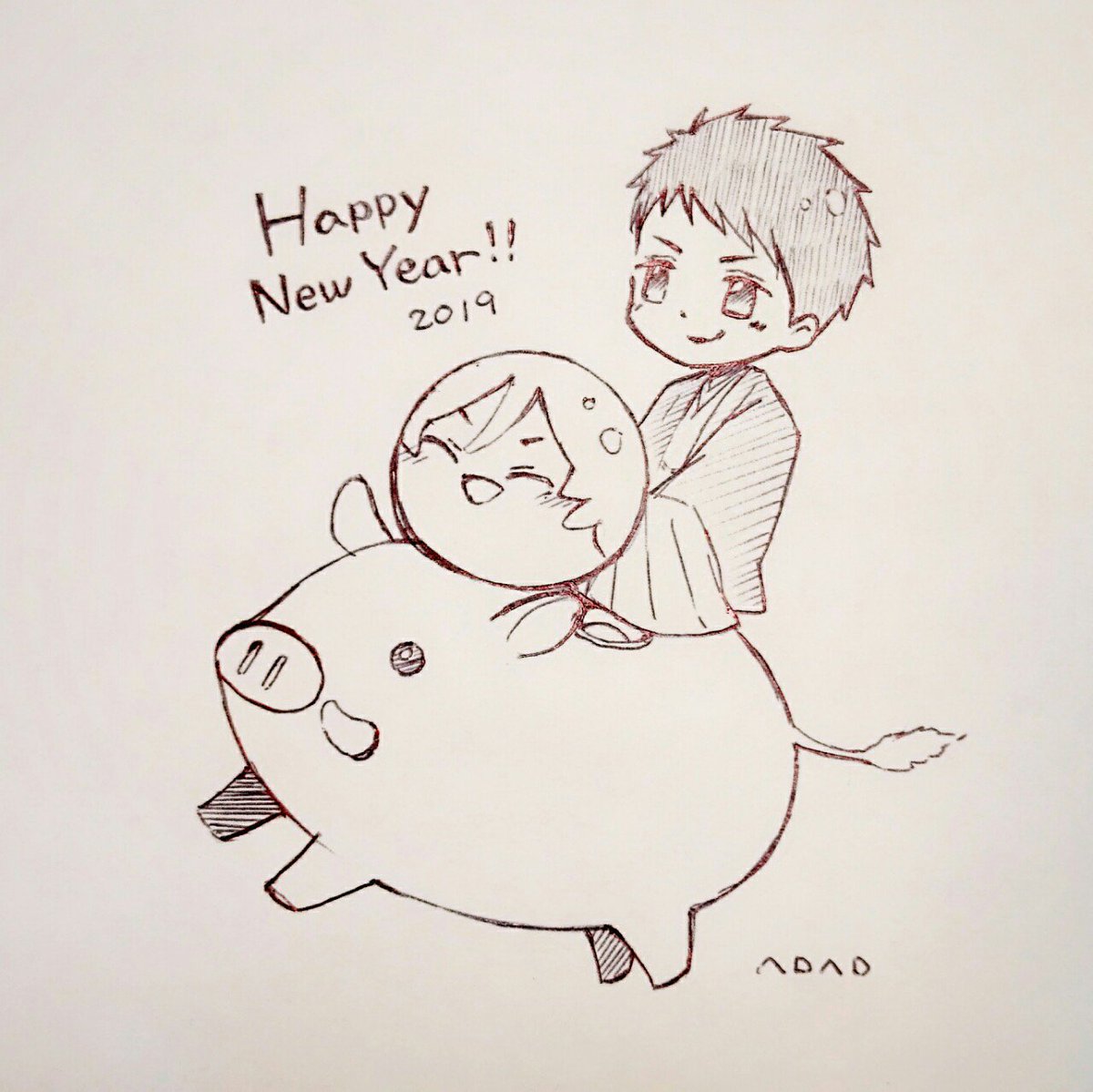 23 81 描き初め🐗 19/01/01 21:21