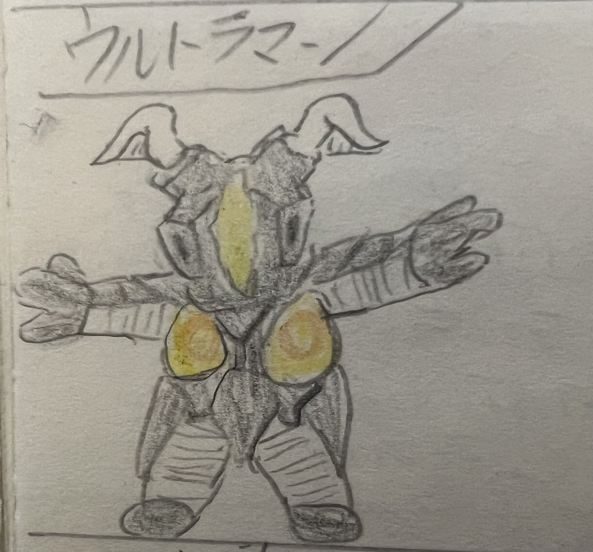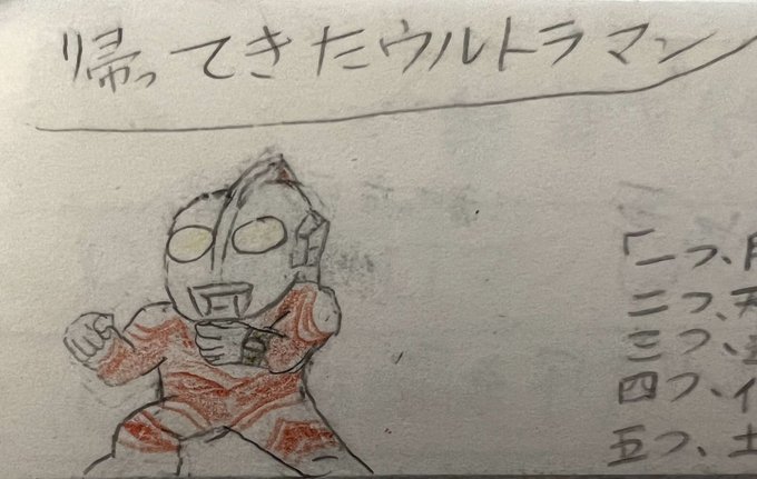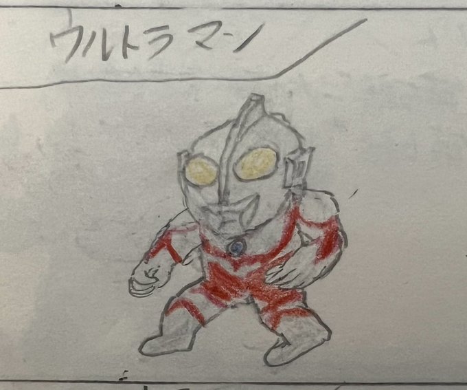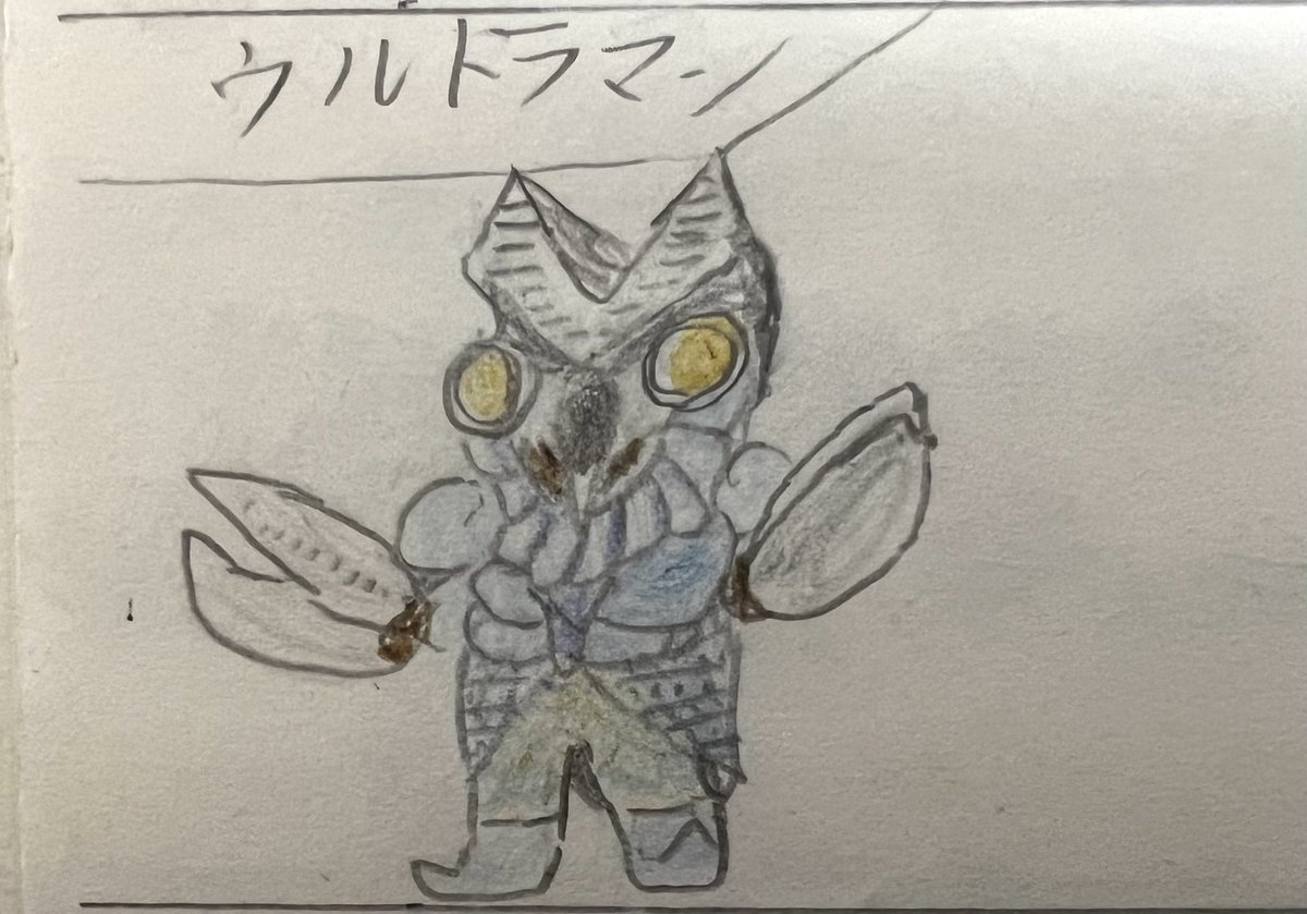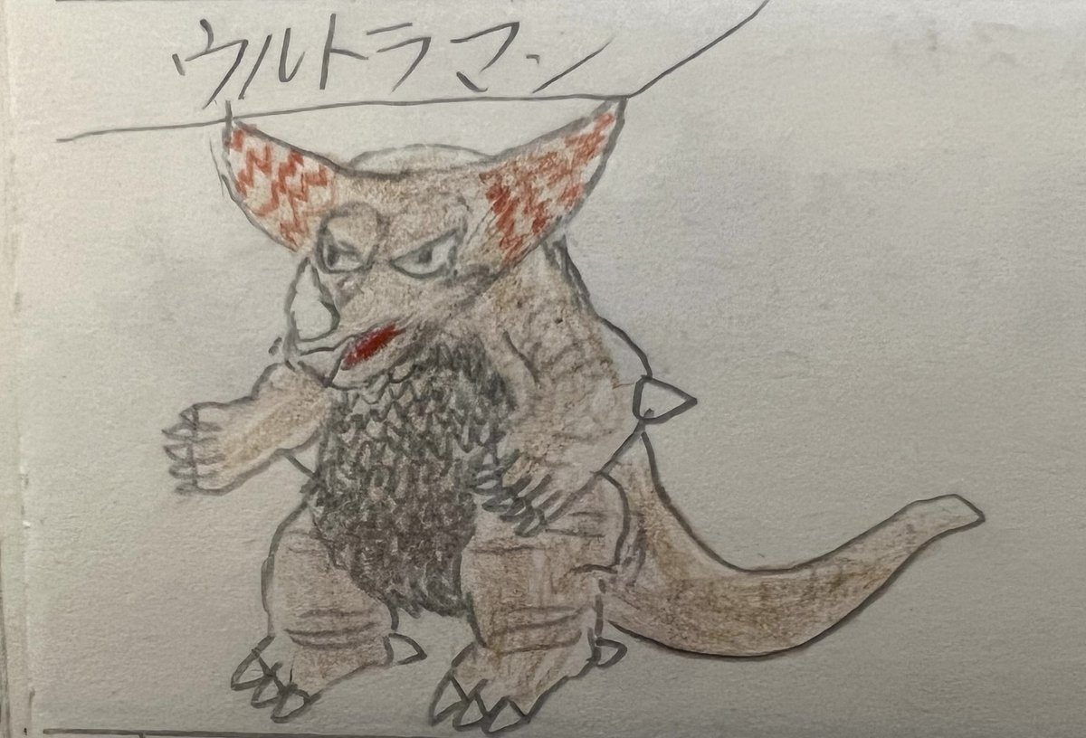 #昭和まんがまつり2023 #ウルトラマン 昔描いた自作怪獣図鑑の過去絵をば。 SDゲーム風です。 保存状態はかなり悪いですが、かわいく描けたので。供養。 評判よければ、帰ってきたウルトラマンやウルトラマンAもあげようかな。 セブンは描いてません😅すんません😅
