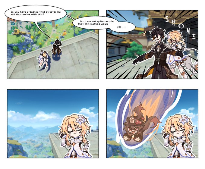 and thus she came home ☄️ #原神 #genshinimpact #genshinimpactfanart #hutao #zhongli #胡桃イラストコンテスト