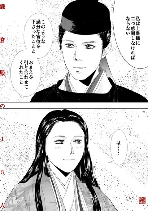 右大臣源実朝 御台所千世 この時実朝の養子に 決まっていた親王は 千世の姉の息子 実朝を心から愛しながら 実朝の子を生むことがない 千世の血筋が 自分の跡継ぎに入ることも きっと実朝の頭には あったことでしょう #殿絵 #鎌倉絵 #鎌倉殿の13人