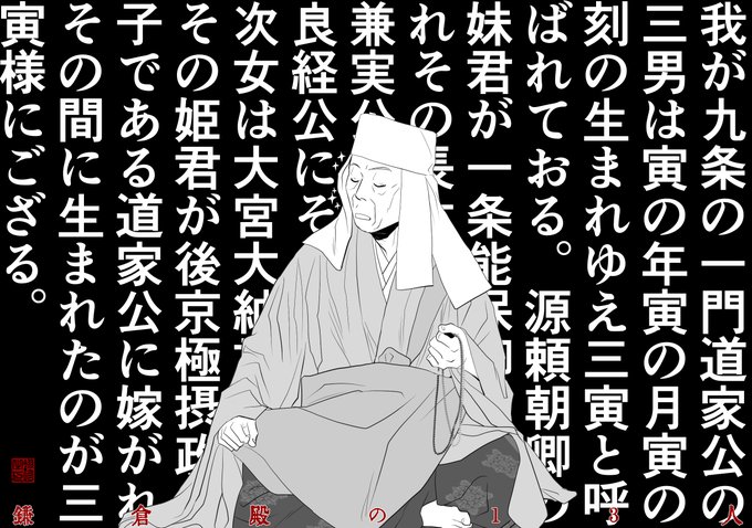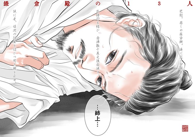 115 653 執権 前陸奥守 北条小四郎義時 「吾妻鏡」には「前奥州の病痾已に獲麟に及ぶ之間…恩許に就き、今日寅尅、落飾令め給ふ」と記述 小四郎は手続きを踏んで臨終に至ります でもこの作品は姉と弟の愛と背信と死と救済の物語としてピリオドを打ちました #殿絵 #鎌倉絵 #鎌倉殿の13人 22/12/19 00:11