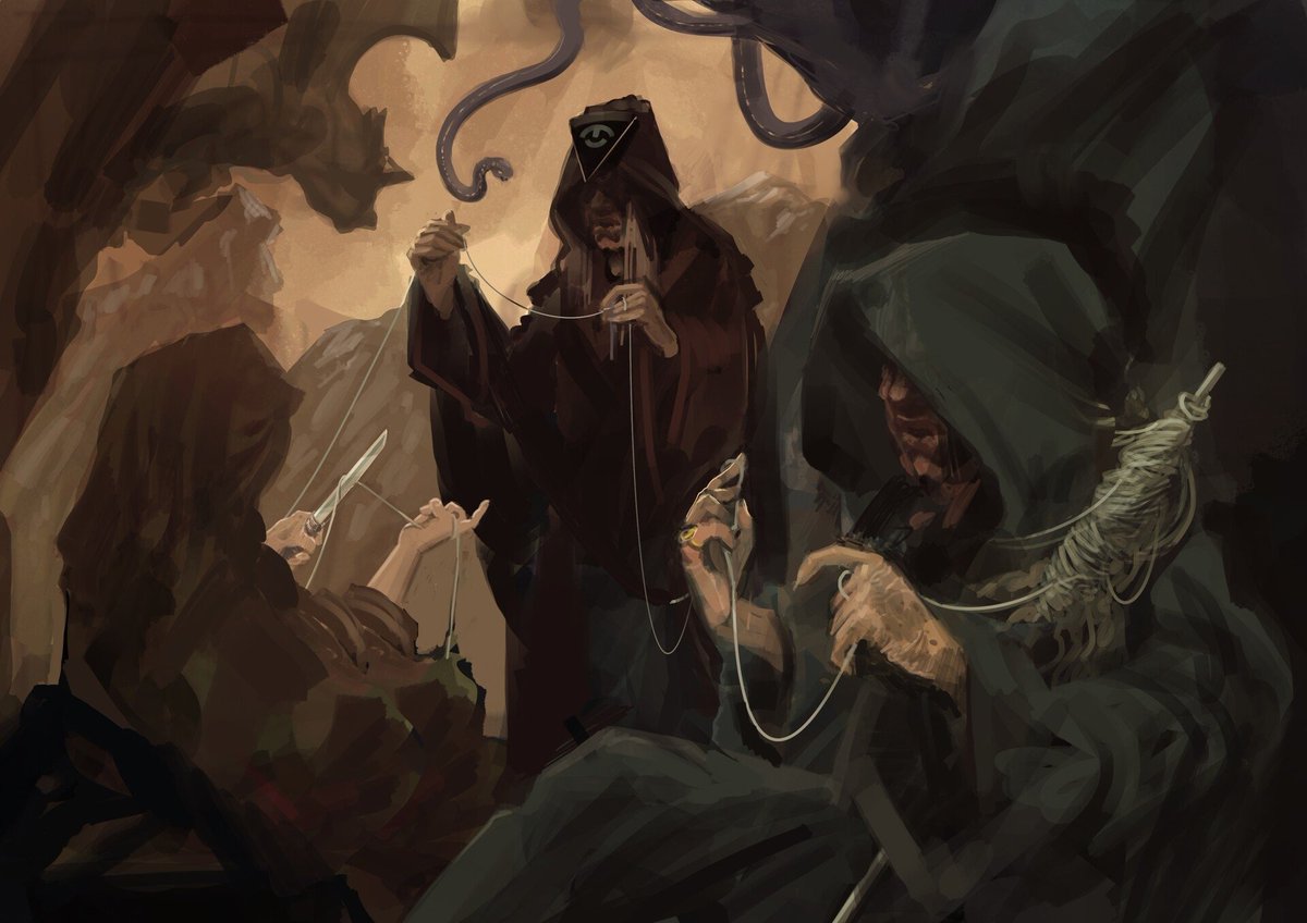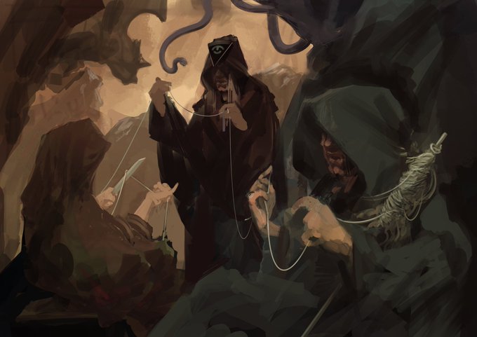 A reworking of my #WyrdSisters / #WeirdSisters #illustration that was part of my #DnD5e #MagicItem / #AdventureHook Generation supplement, dmsguild.com/m/product/3750… _______________ You can find reviews here: youtu.be/0VkO5947AOs & here: youtu.be/HO4u6qi0Uuc #5e #ttrpg