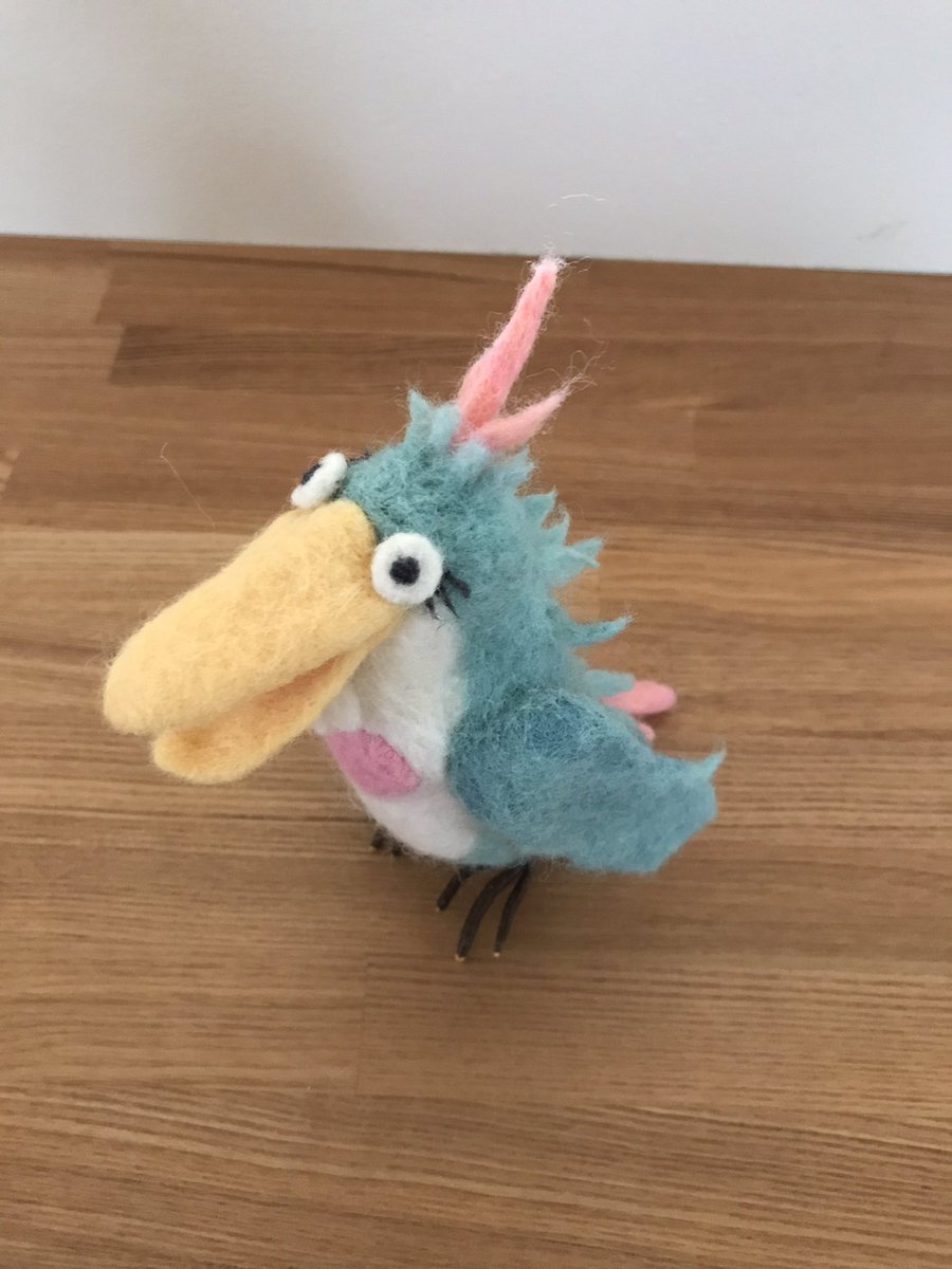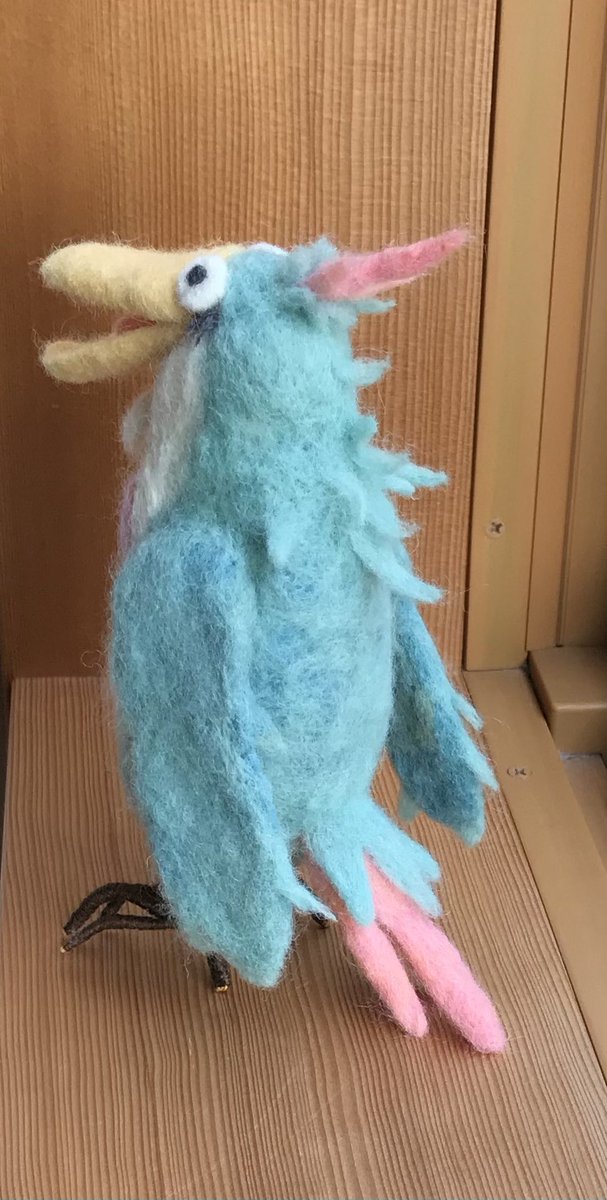 2 6 #体操ザムライ #羊毛フェルト #荒垣BB あらためて見たら胸のハート大きすぎた😓 ともあれこれでビッグバード撫で放題なので自己満足(ただし手乗りサイズ) 21/01/14 10:39
