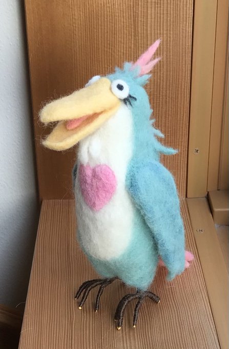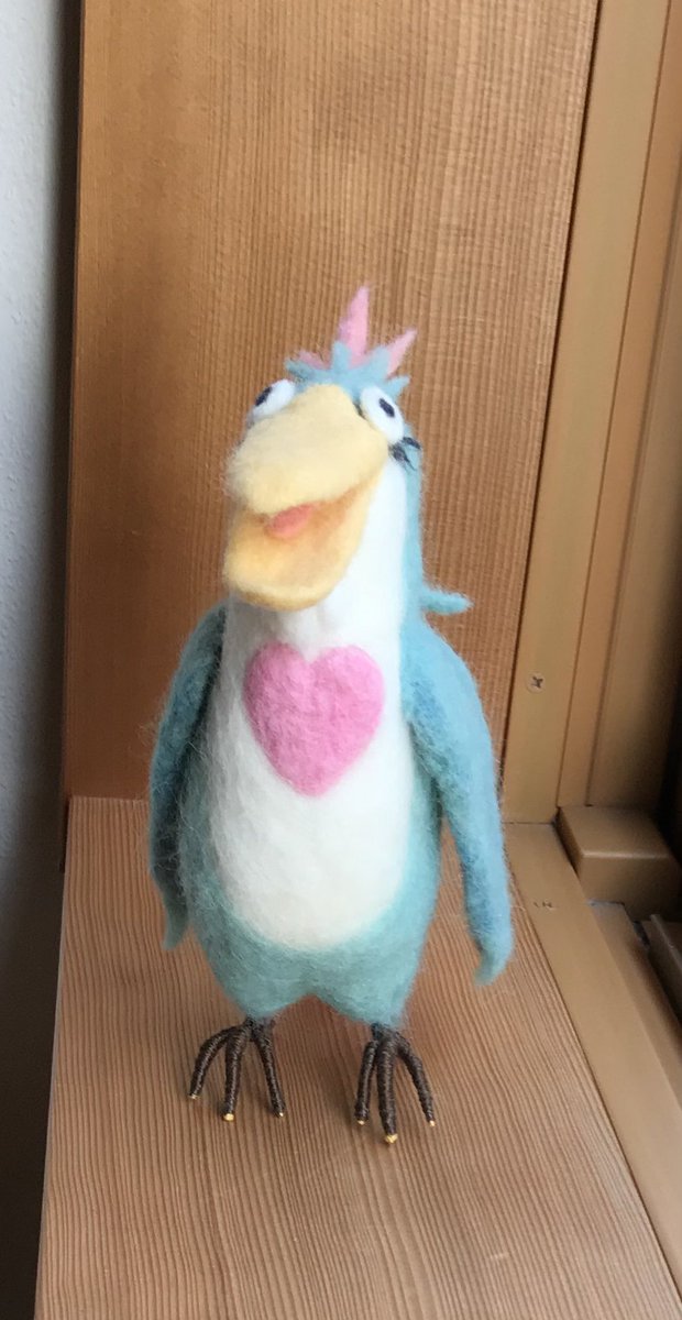 #体操ザムライ #羊毛フェルト #荒垣BB あらためて見たら胸のハート大きすぎた😓 ともあれこれでビッグバード撫で放題なので自己満足(ただし手乗りサイズ)