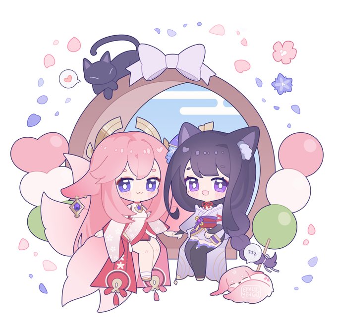 923 4140 happy birthday to them!! 💜🍡🌸 #raidenei #yaemiko #原神 #eimiko 22/06/27 04:14
