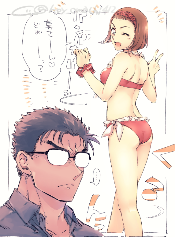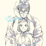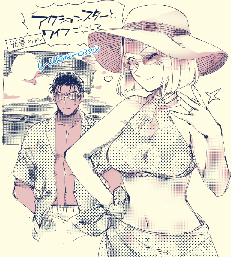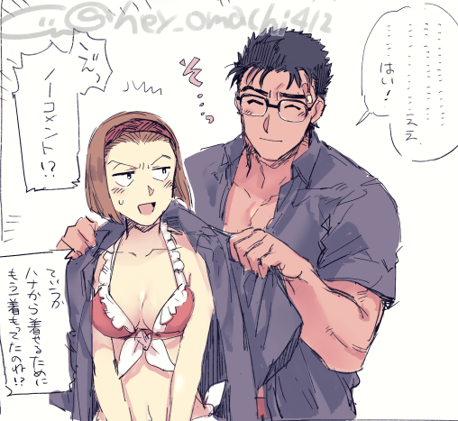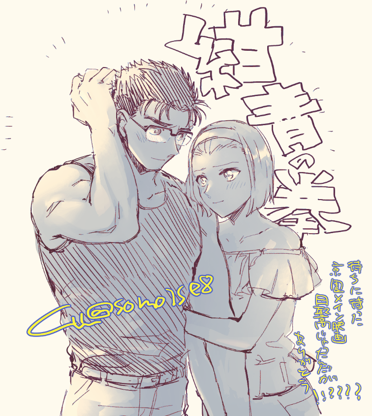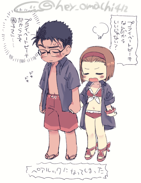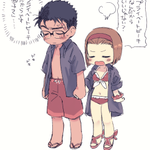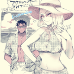 水着京園とついでにおふたりの色を初めて塗ってみるテスト。シャツ着せがちなのはもうしょうがないと思うんだ…いや実際絶対京極さん着せるやろ(幻視)(じぶんの名前間違えてたので再投稿)