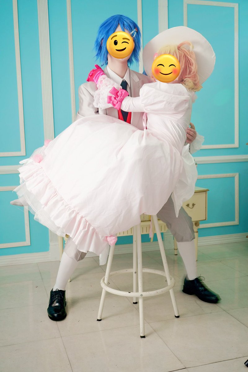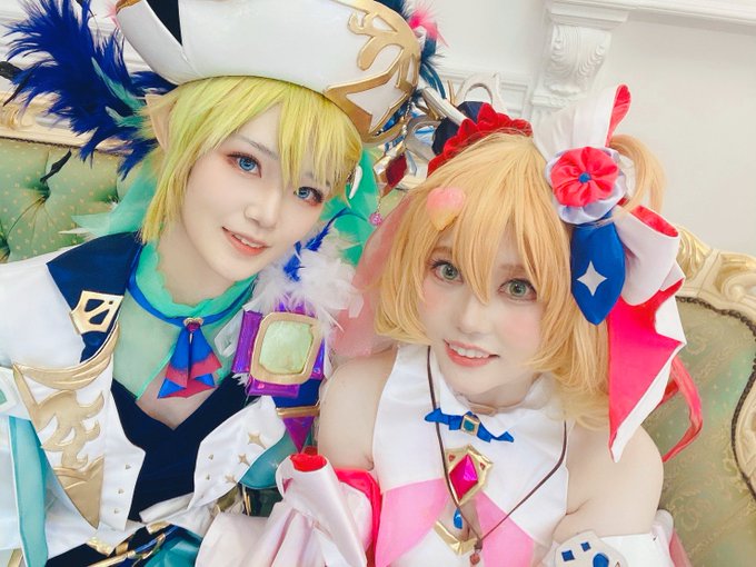 #ラスミDay13ノーブル合わせ めりカナメさんと🧡 このツーショでは手袋パージしてるから分からないけど、指にはめられた薔薇の指輪がとても印象的だった🌹✨なんと蓄光塗料⭐️ つまみ細工の髪飾りやティアラ、腰のリボンや染めた布で作られた衣装がとても綺麗だった😭✨✨