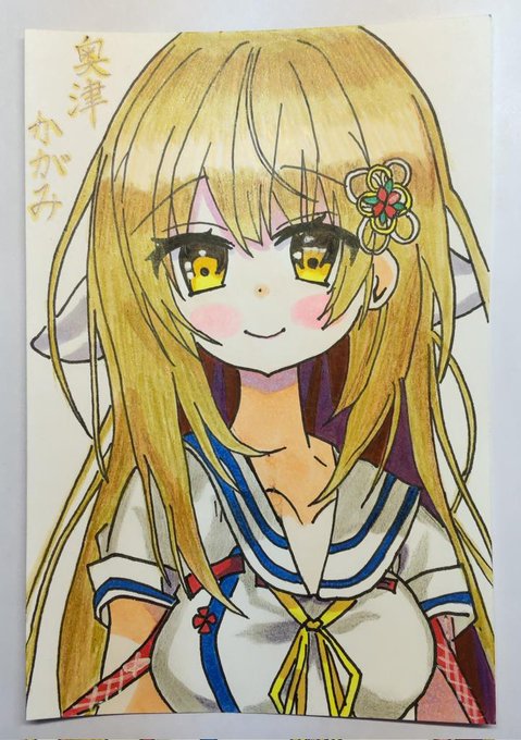 2年ぶりに奥津かがみちゃんを描いてみた。 前回よりは可愛くかけたかな😅 #温泉むすめ #奥津かがみ