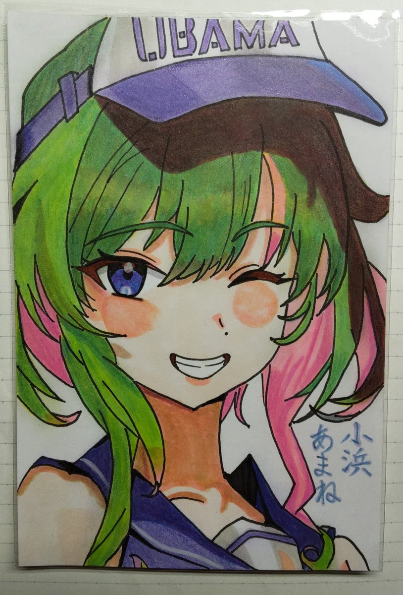 小浜あまねちゃんを描いてみた。 帽子の陰影の彩色が赤褐色になった🫠 #温泉むすめ #小浜温泉 #小浜あまね