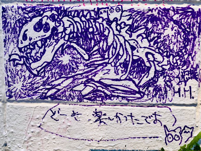 5 37 デザフェスギャラリーで無料で描けるスペースがあったので酔いながら友達と一緒に夢中になって壁に描きました、楽しかった なんかよく分からん細いスペースの一番下にあります 22/09/11 21:21