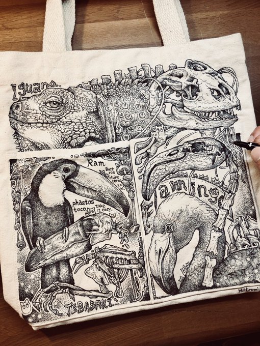 82 1185 手描きトートバッグ 〜鳥たちとイグアナスペシャル〜 23/03/24 21:00