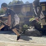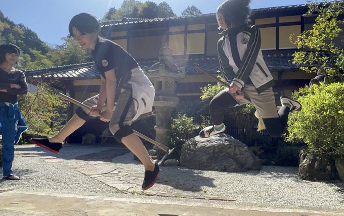 ⚠︎cos / 刀剣 /おふしょっと📷(?!) 【🧹箒芸。】 . 🩸『豊前がやるなら!!やろう!!!!!!!!!!!!!!!!!!!!(低音クソデカボイス)』 . 🏍️『おぉ!! やる気充分だな、まつ』 . #GOおんれっすん2023 ?! 〜総監督、大典太光世を添えて〜 .