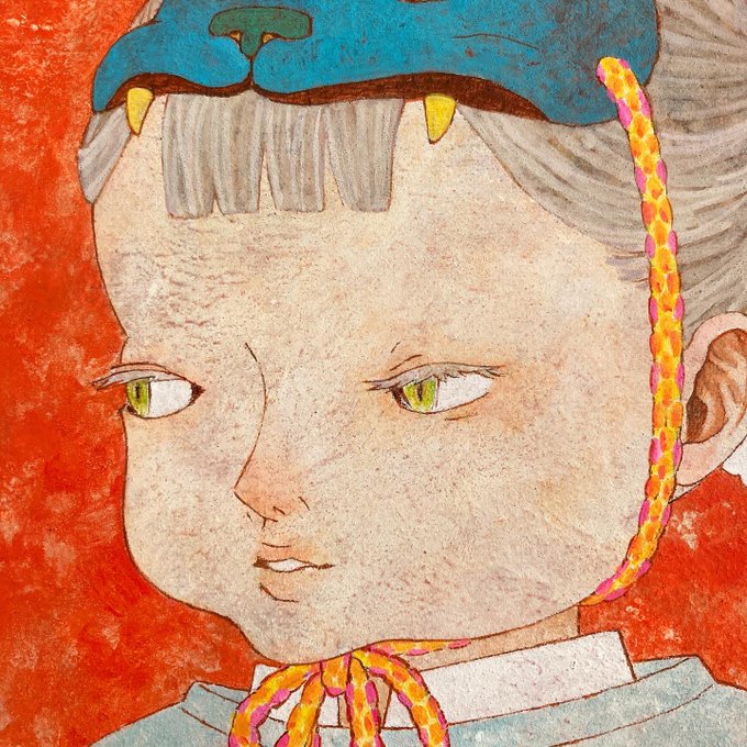 2 2 #アナログ絵 アクリル画です。 アナログ絵の良いところは、 実感があるところです。 この世に存在してる感。 22/12/18 20:04