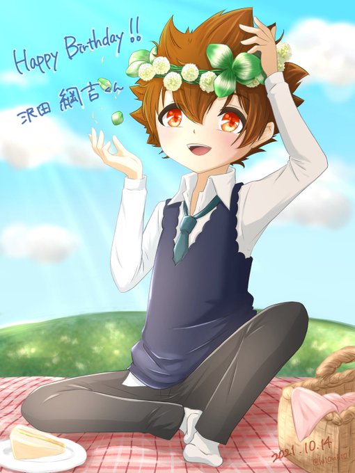 綱吉くん今年もお誕生日おめでとう(*¨*)♡ 季節じゃないけど唐突に花冠付けてもらいたいと思ってしまったので許して欲しい:( ;´꒳`;): #沢田綱吉誕生祭2021 #沢田綱吉生誕祭2021