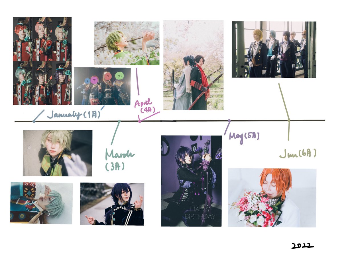 1年間ありがとう〜😭本当に楽しい一年だった😭 来年ももっとフォロワーさん達と遊びたい! 加工依頼できてないのもあるのでお写真借りたり顔隠したりしました👼 #コスプレ総決算2022