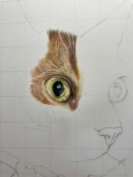 今週中に完成できるかな🌟 #色鉛筆画 #猫