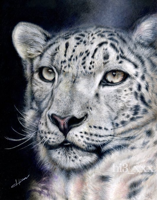 投稿はできるみたいだな。 斜めから撮ったら浮き出てるようにみえる! #色鉛筆画 #ユキヒョウ