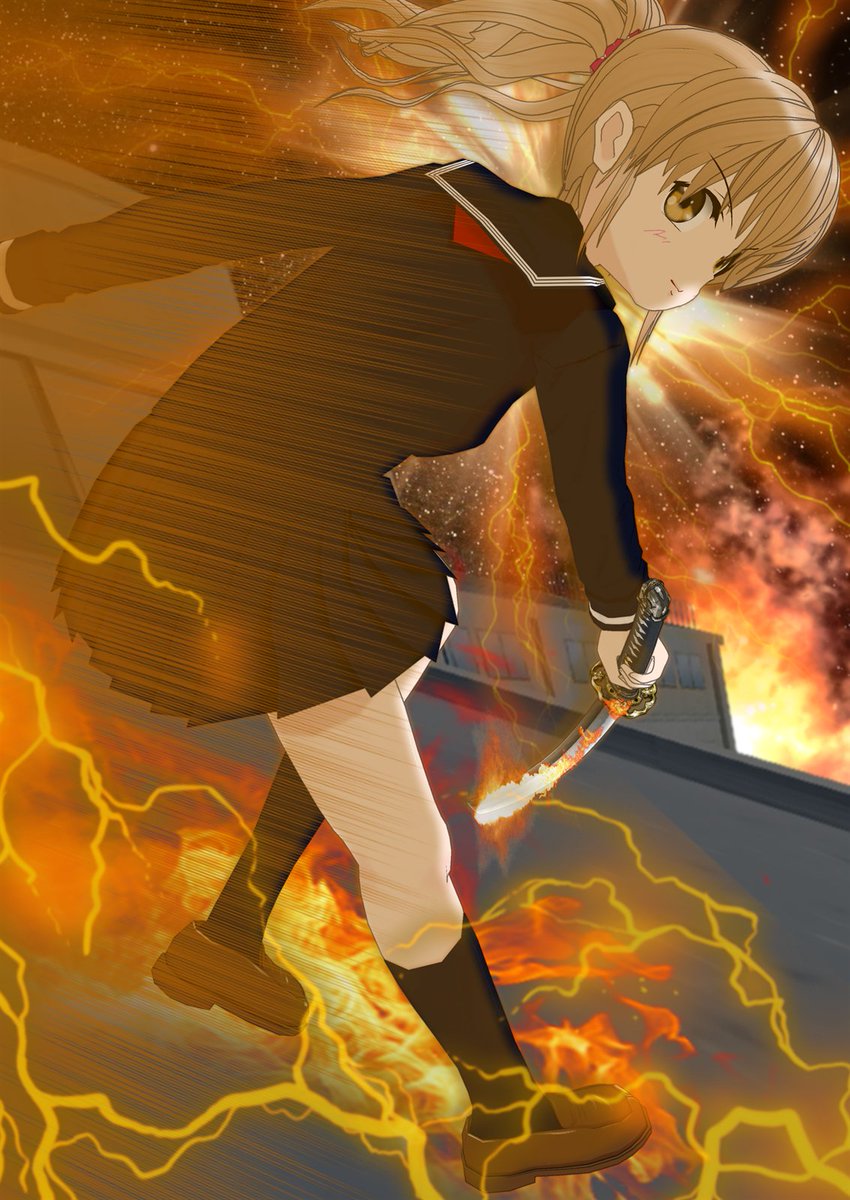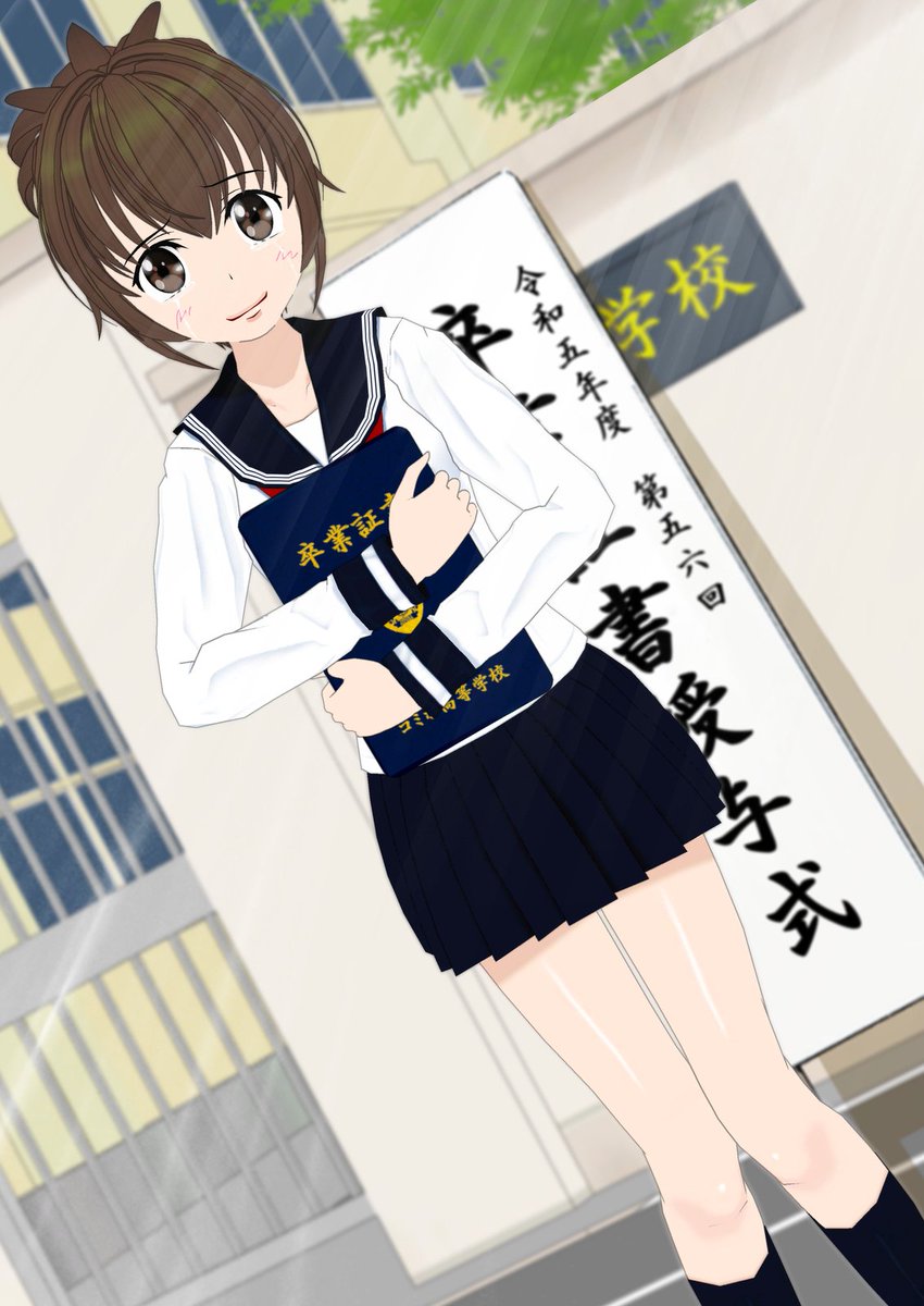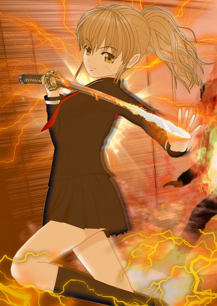 何気に出来た一枚、過去絵に手を加えて セーラー服には日本刀でしょうw(その4) アングルまでいじったので過去絵(右)と #イラスト好きな人と繋がりたい #冬の創作クラスタフォロー祭り #comipo #コミPo