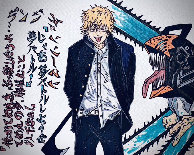 デンジ完成したぁー!! かっけぇーね!\( ⍢ )/アナログです!! #デンジ #チェーンソーマン #イラスト #アナログイラスト #イラスト好きさんと繋がりたい #フォローした人全員フォローする #コピック