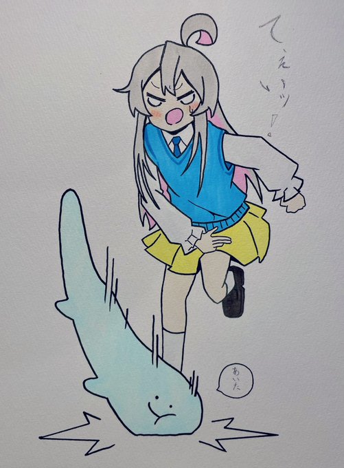 カラフルまひろちゃん!! みはりの買ったぬいぐるみを床に 投げつける𐤔𐤔𐤔 #緒山まひろ #イラスト #アナログ絵 #おにまいお絵かき #おにまい #おにまいは紳士淑女の嗜みだ #あいた #お兄ちゃんはおしまい