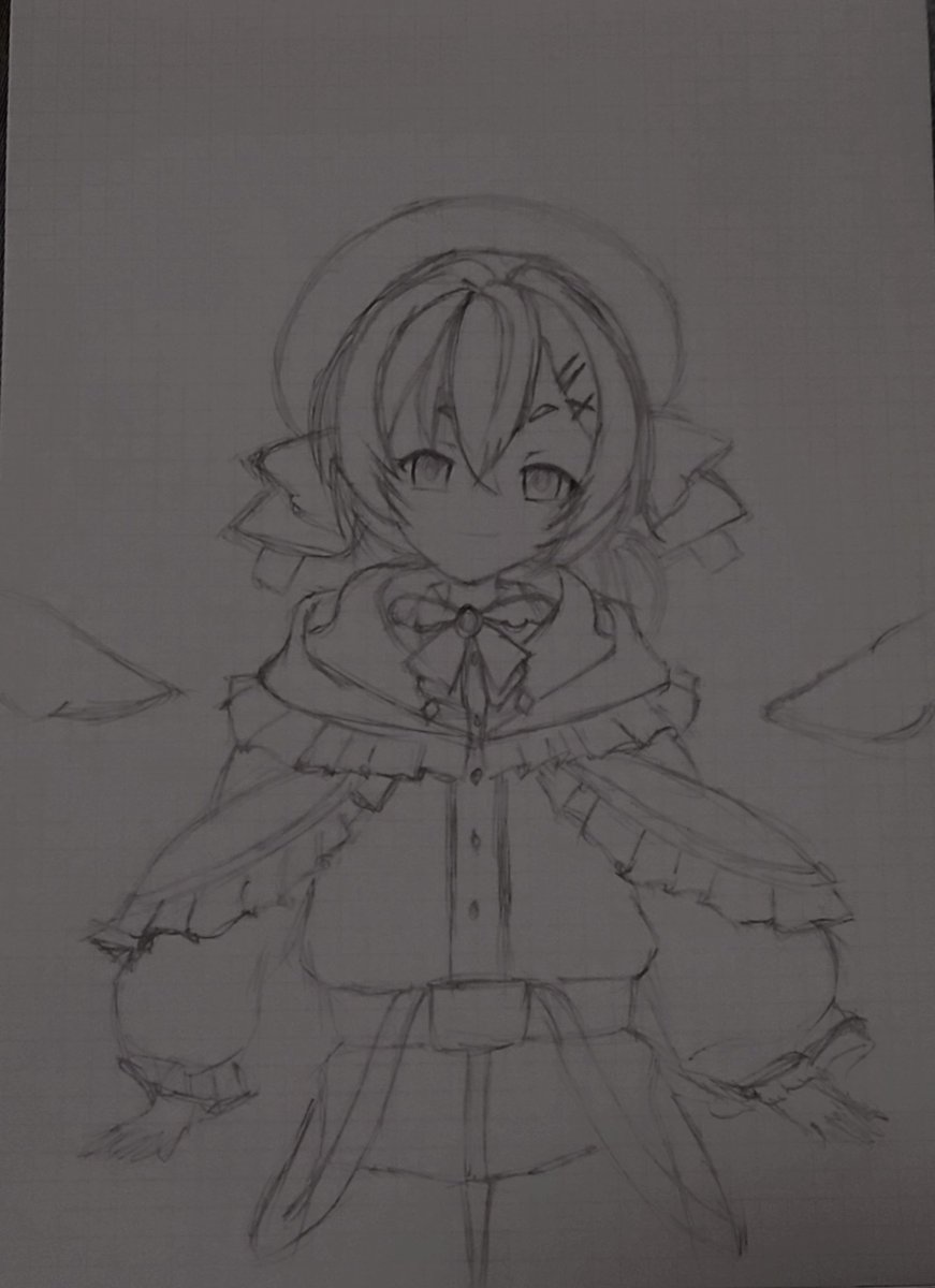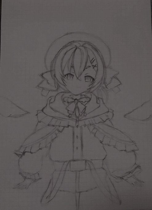 #りえるのえほん 新衣装に成った事だし、りえる様を描いてみました。色塗りはスマホアプリでするつもりだけど、いつになるか判らないので下描きを(あまり上手くなくて申し訳ないw)