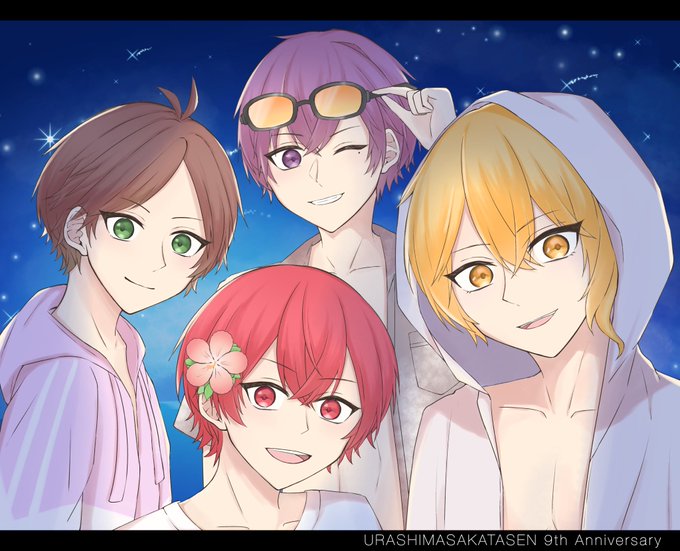 浦島坂田船9周年おめでとうございます!! これからも素敵な航海が続きますように𓂃𓊝💚💜❤️💛 #浦島坂田船9周年 #うらたぬ王国の美術館 #しまーと #坂田です #センラの絵ぇやん