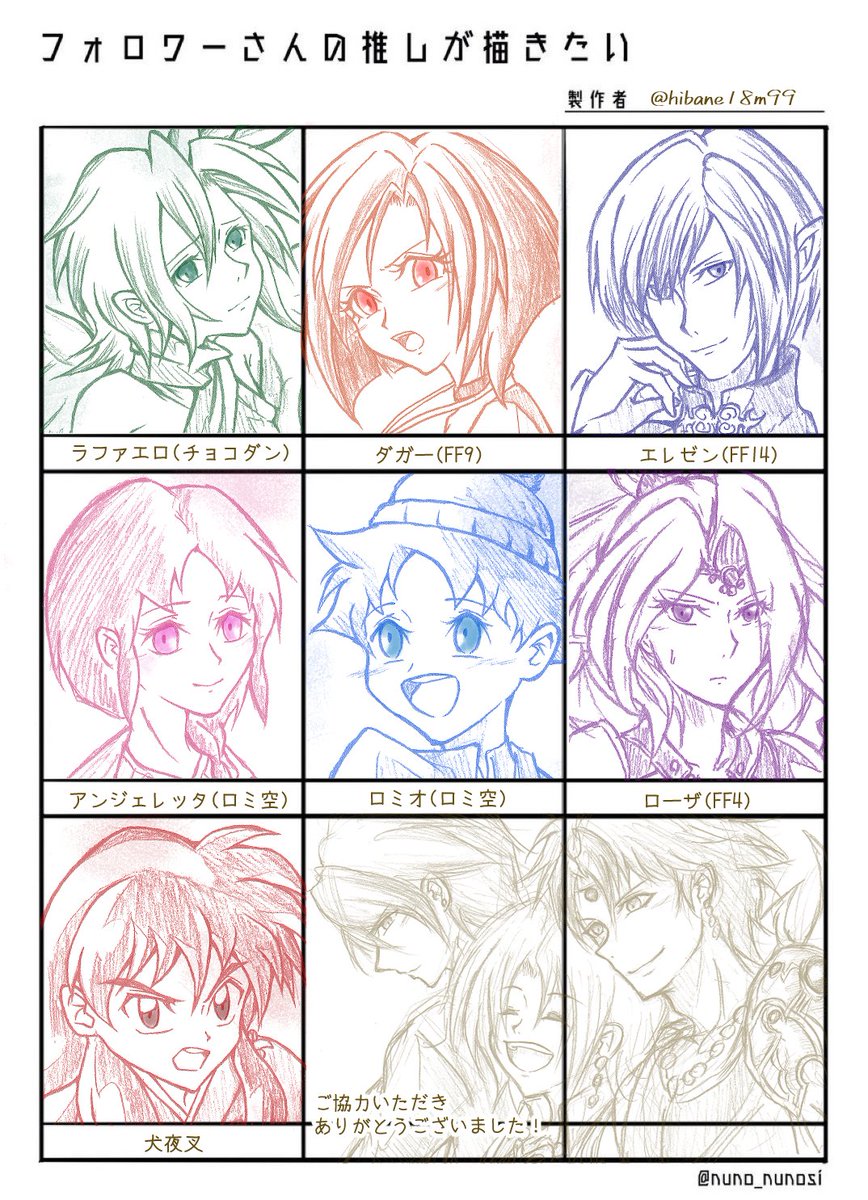 #フォロワーさんの推しが描きたい お待たせしました! こんなちっぽけなアカウントにも関わらず、7名ものフォロワーさんにご協力頂きました!!本当にありがとうございます!(´;ω;`) 顔だけにしようと思ったのですが、お腹辺りまで描きたくなっちゃったのでツリーに続きます~!