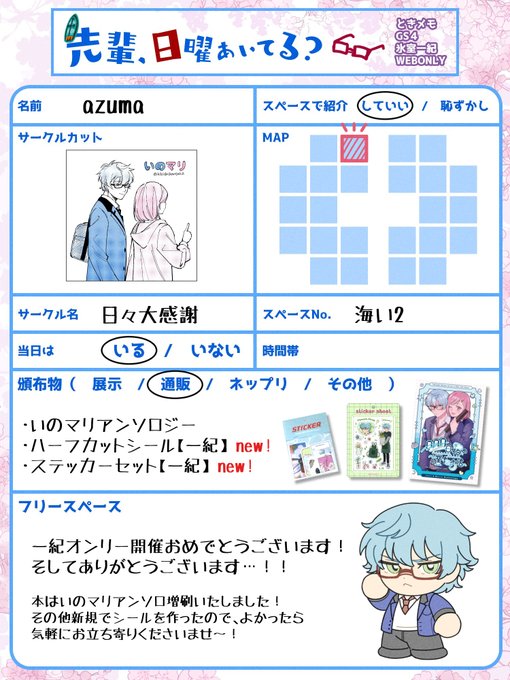 スペースは【海い2】いただきました🌊🏄♂️ よろしくお願いします! #氷室一紀WEBONLY #イノリオンリー参加表