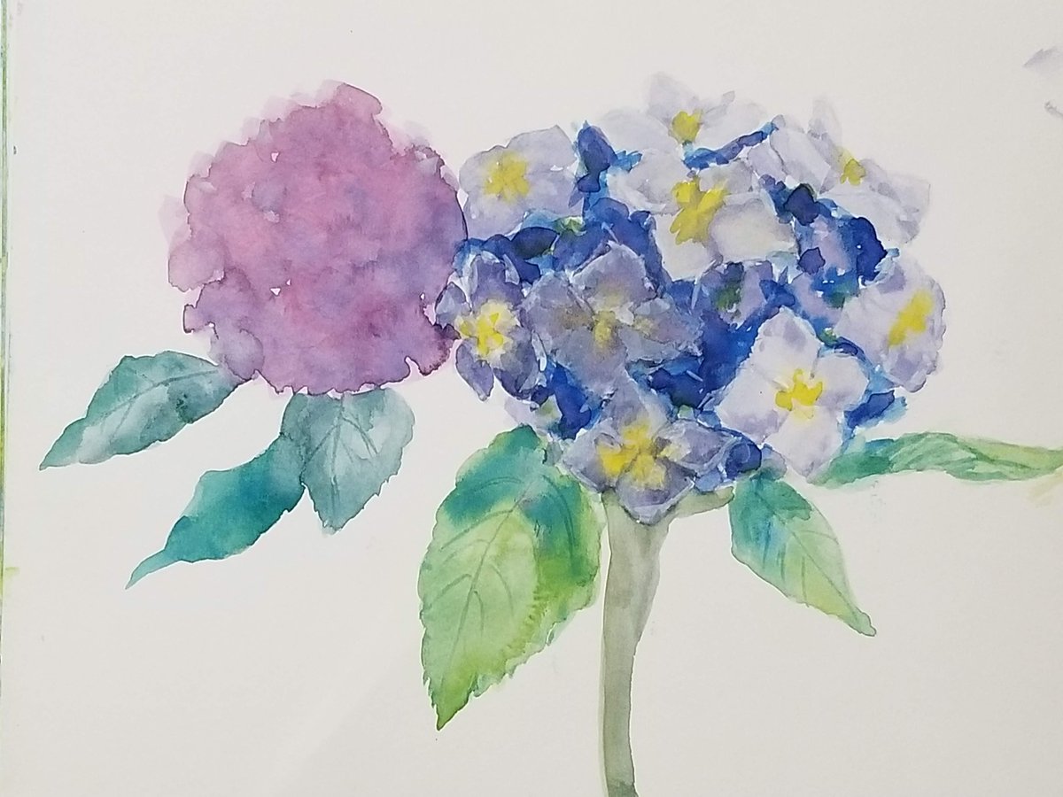 0 1 紫陽花 柴崎春通先生の動画を見ながら描いてみました。 #水彩画 #watercolor #Watercolour 23/05/25 17:14