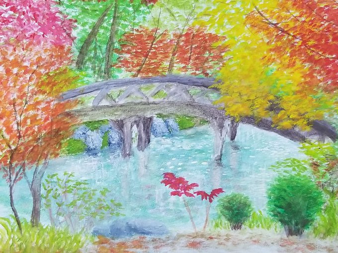 1 2 紅葉の遊歩道 #水彩画 #watercolor #watercolour 23/07/09 16:46