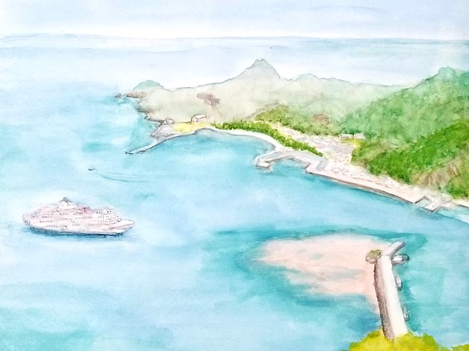 0 1 小笠原父島 #水彩画 #watercolor #Watercolour #Ogarsawara #Chichijima 23/07/01 16:21