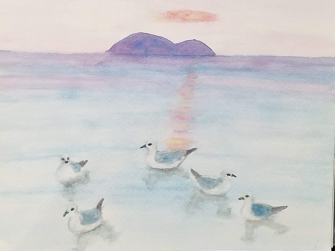 0 2 カモの群れ 琵琶湖 #水彩画 #イラスト #watercolor #Watercolour #biwako 23/05/19 17:04