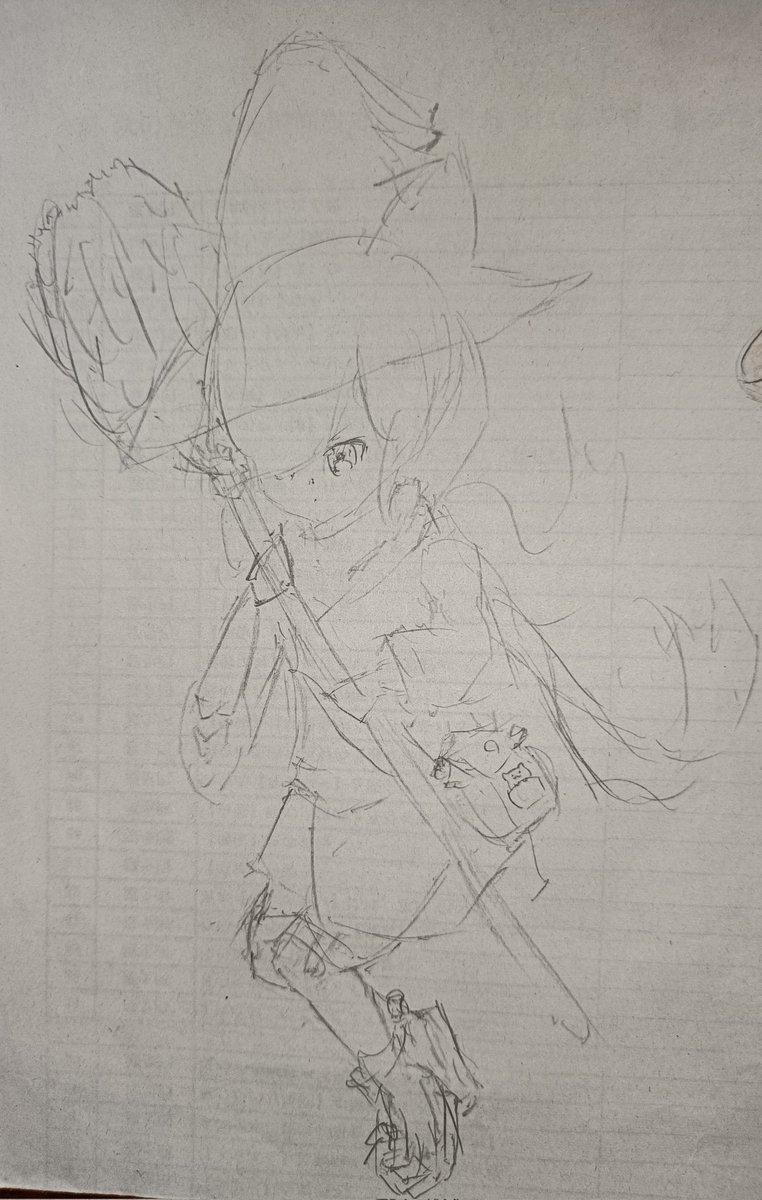 ツッタカター始める前にアナログで描いた魔女っ子なヒビキです。ハロウィン絵大至急で描いてます、今日中に出せたら良いなぁ… #デュエマ #今日のヒビキ