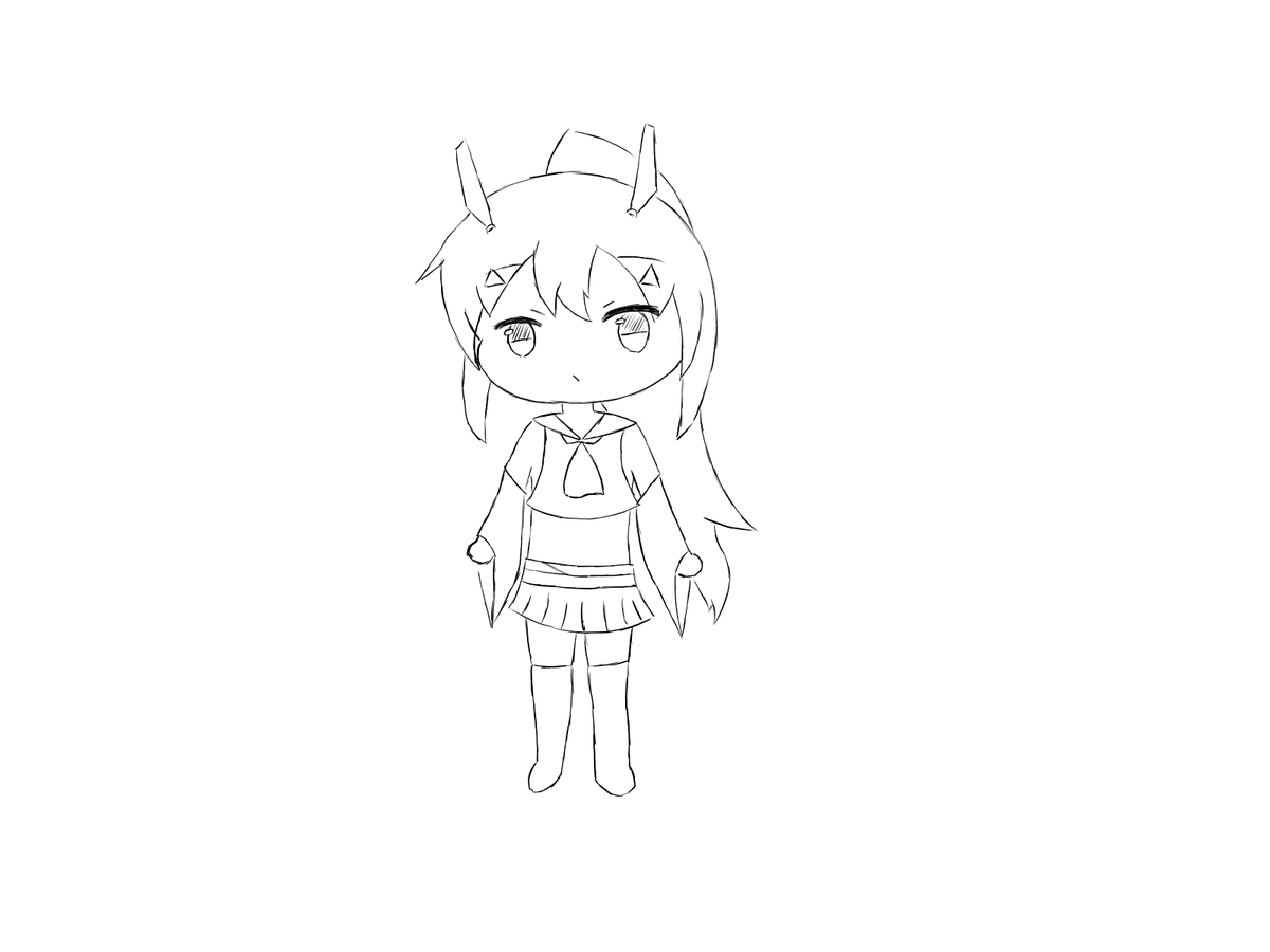 板タブ練習 今回は全身の練習も兼ねて3頭身の綾波を描いてみた #アズールレーン