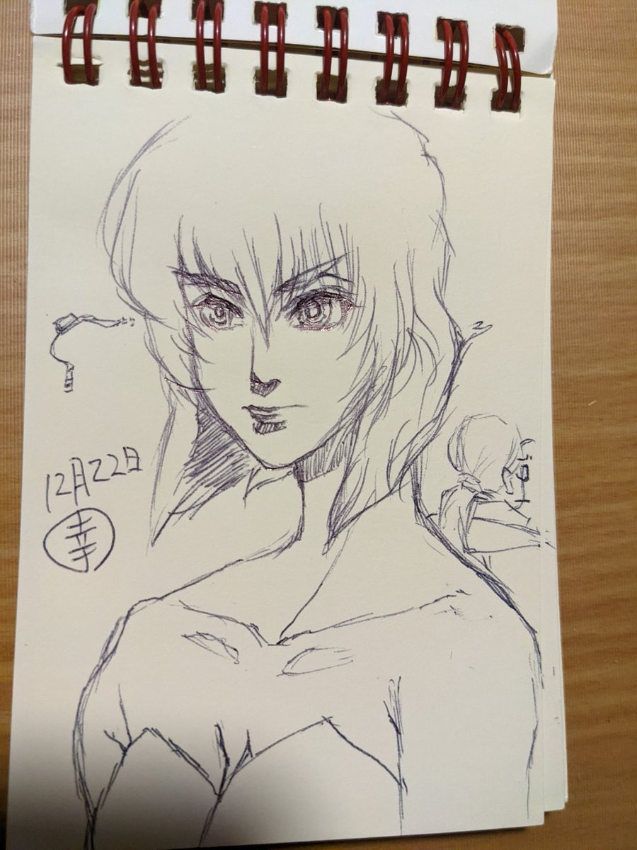 1 2 髪型が迷走した。ポニテ描こう思うたのに。(笑) #落描き #落書向上委員会 #ラクガキ #アナログ #ボールペン画 21/12/17 02:19