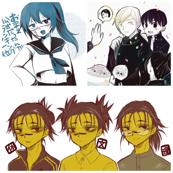 6 27 #お兄ちゃんワンドロ お題『学パロ』 色んな可能性を捨てられなかった脹相先生〜!!! 右は理系っぽい気で描いてたけどだんだん古文の先生にも見えて来たななどと… 21/07/10 22:15