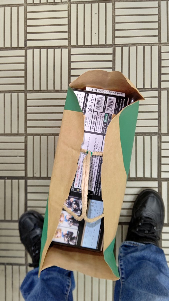 箱がデカいと聞いていたので、持ち帰るの大変だなあ…と思っていたら、玉藻の前と同じ位だったので一安心。 しかし紙袋の隙間から乳がチラチラするのは勘弁してほしかった(笑)。 #メガミデバイス #皇巫スサノヲ