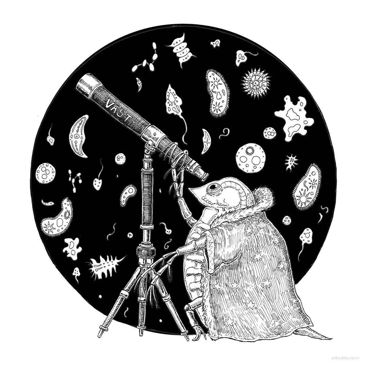 #inktober52 No.12 "Microscopic " My version 『My”黒”Scope』 ・極小の世界。 #drawing #illust #ミジンコ #inktober52microscopic #inktober2021 #inktober