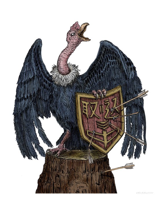#inktober52 No.14 "Shield " My version. 『盾コンドル』 ・ちょっと今 取り込み中🦅 #drawing #illustration #お絵描き #イラスト #condor #inktober52shield #inktober2021 #inktober