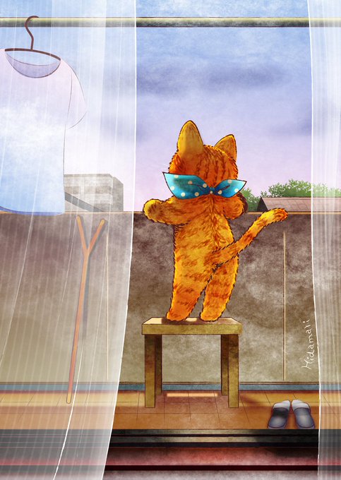 『ベランダの猫』 茶太郎 「今日も1日が終わるにゃ…………」 「…………にゃうん…………」 「ニャーだって、色々考えちゃう時があるんにゃ…」 「……………そろそろ、洗濯物取り込むにゃ」 #Twitter交流会会場 #絵描きさんと繋がりたい #創作イラスト
