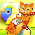 『夕釣りの猫』 茶太郎 「ゴロゴロ… 朝と夕方の釣りが大好きなのにゃ。 別に釣れなくてもいいのにゃ。 ただ、釣り糸を垂らしてボーっとしてる時間が ニャーは、とっても幸せなのにゃ…」 #猫好きさんと繋がりたい⠀ #絵柄が好みっていう人にフォローされたい #釣り #イラスト