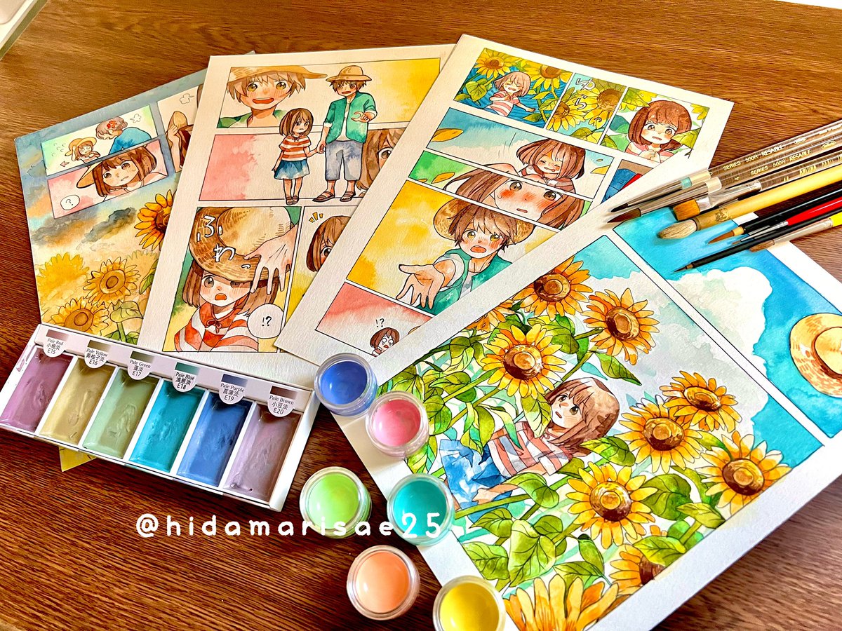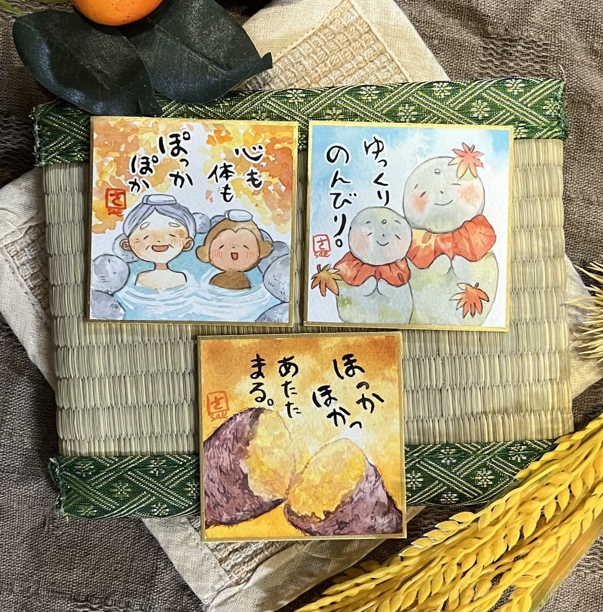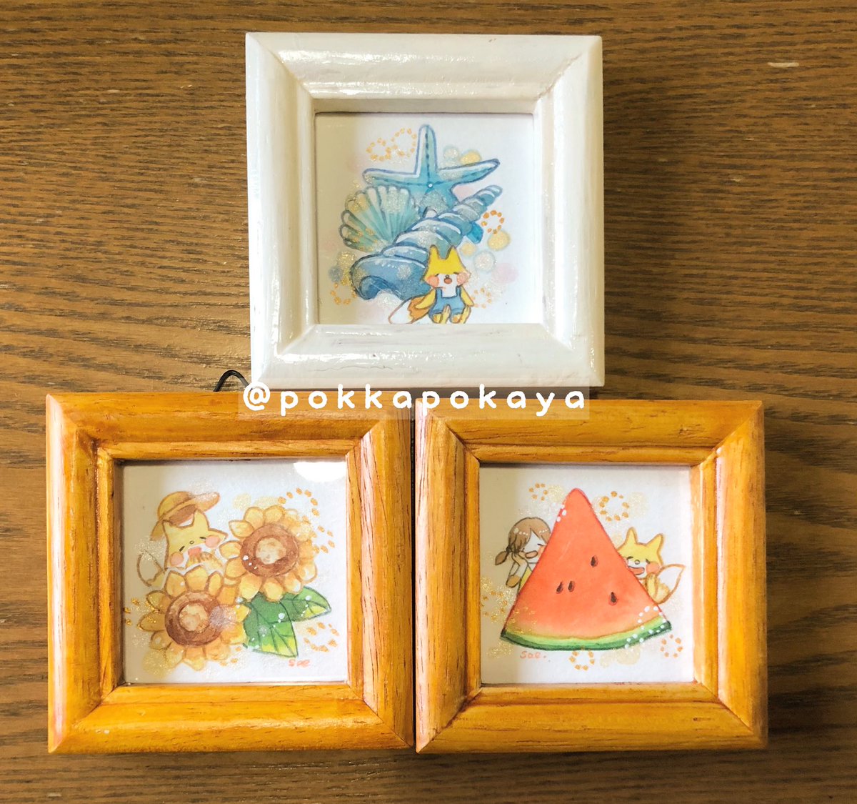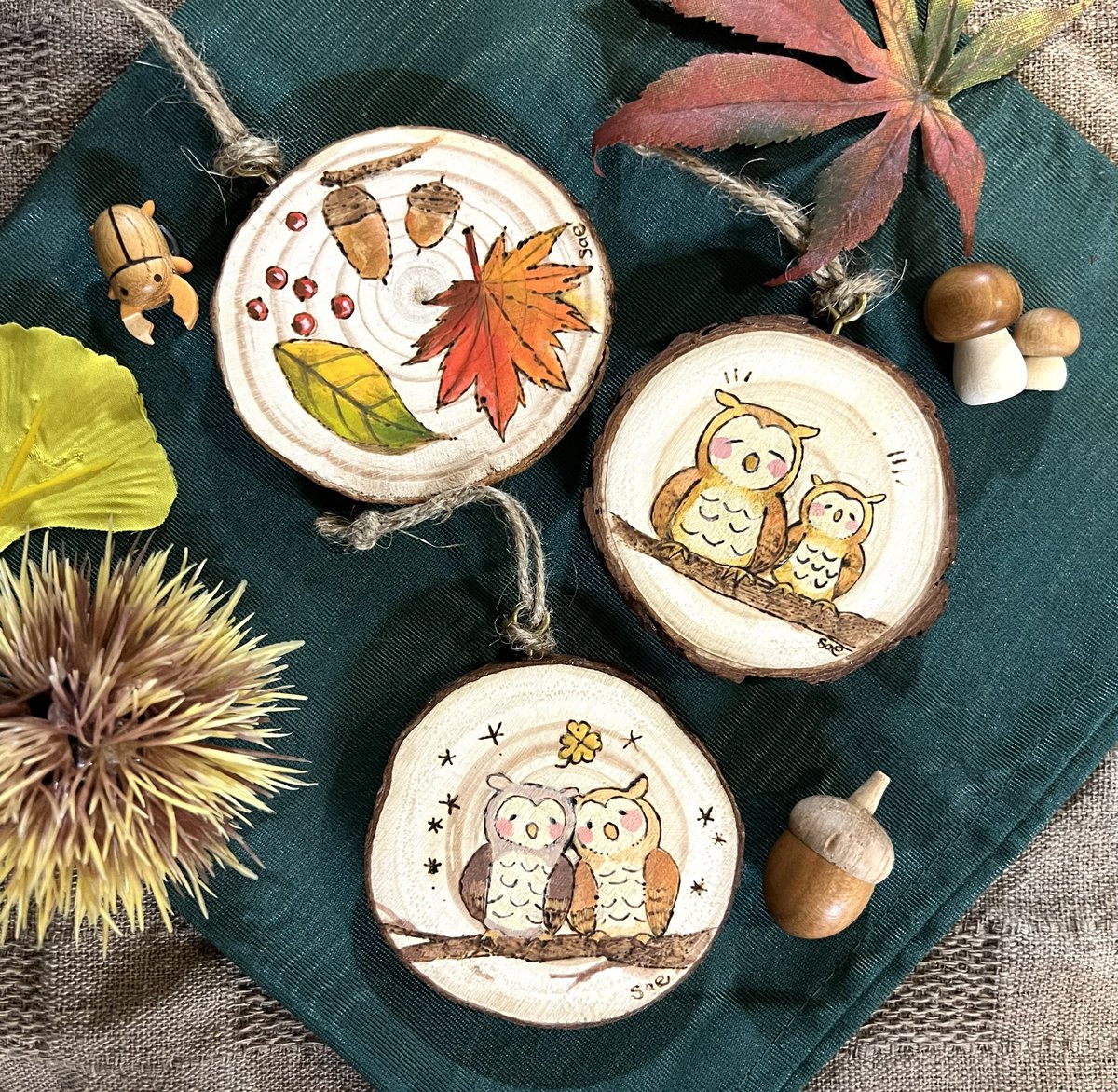 #ゴールデンウィークSNS展覧会2023 参加させて頂きます!☀️ 水彩の大きめの絵の他にも、 切り株に絵を描いたり、小さい絵も描いてます💪🏻 来月5月13日から始まる、第9回 #ごーやマルシェ に、こちらのような小さめの作品も展示販売します〜! (画像は過去のものになります…!)
