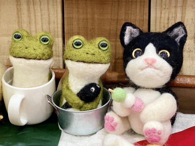 Twitterで見た『いちご蜂蜜シャーベット』にトライ💡 シャリシャリいちご🍓が美味しい😋 タイムリーなことにメランジュ・メンバーのさらぴこちゃん@sala_piko が いちご猫を作ってた😆 #ハンドメイド好きな人と繋がりたい #いちご蜂蜜シャーベット #いちご猫 #羊毛フェルト #水戸京成百貨店