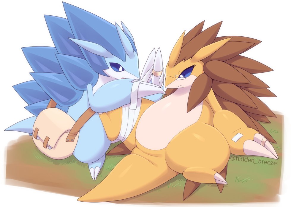 うちのサンドパンたちにちょっとしたケガを治させておいた図。砂針は多分脚と腕を多少痛めたとこなんだと思う