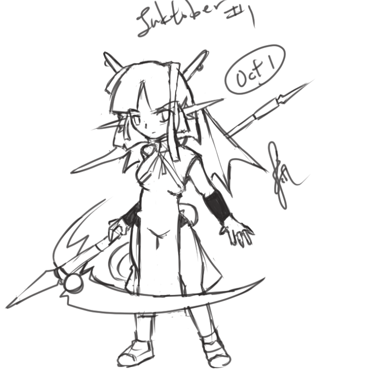 2nd day of #inktober2022 I cheated a little and used a holotober prompt and used one of my character I'm working on. still a little rust but hopfully get better when I go along :