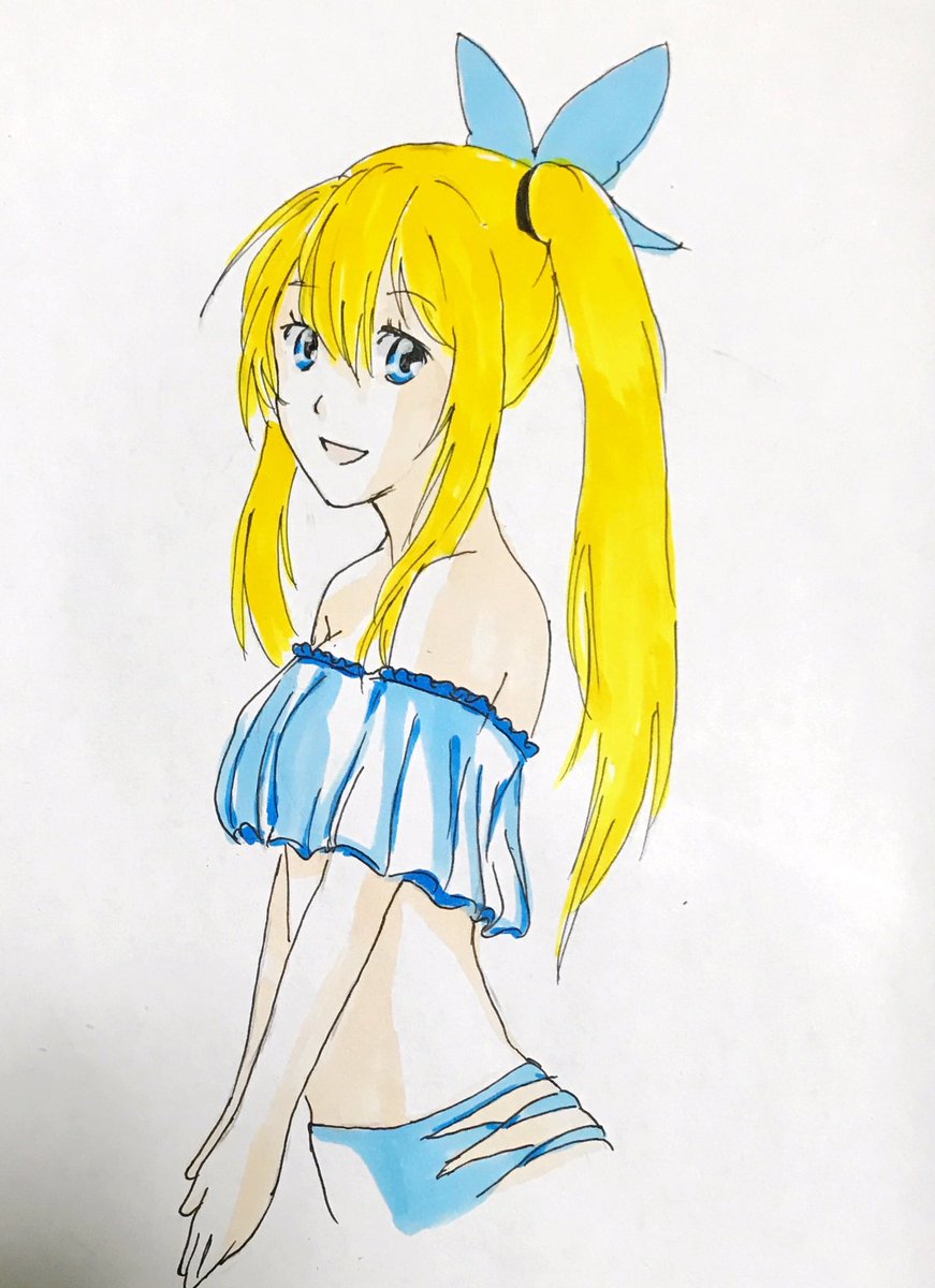 16 41 途中で描き直して20分ドロー😂 オフショルダービキニ!!!! #ミライアカリちゃんでワンドロしようぜ 20/06/06 23:09